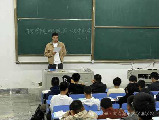 为明确新学期工作要求,营造积极向上的学习生活氛围,10月9日,2025级中队在数理楼117召开了第一次全体会议。会议由指导员辛蔚主持,会议强调了关于大一新生入学相关事宜,就大学日常生活、学风建设和网络安全等制定相关规定,并给出合理化建议。