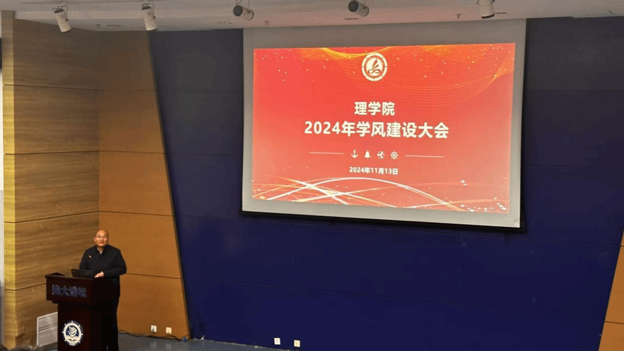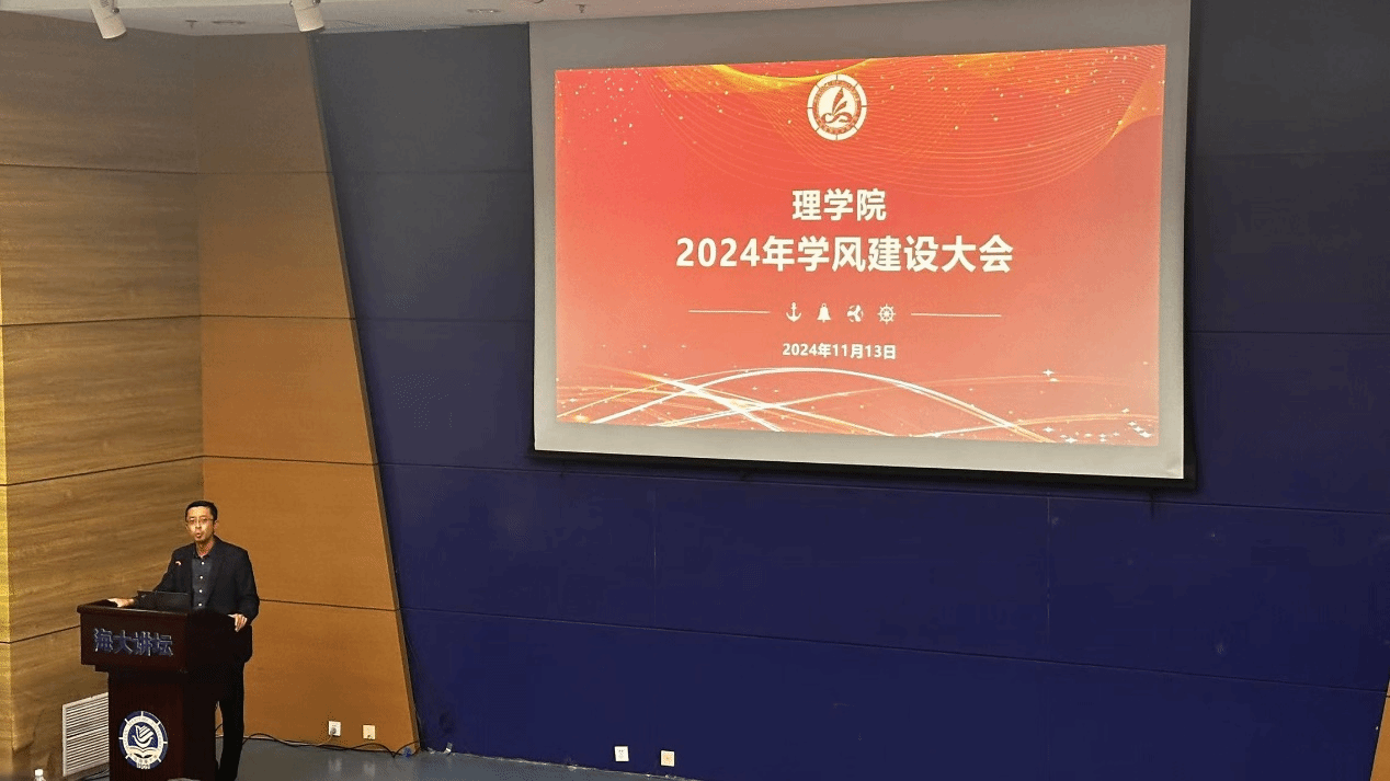 孙怡东强调,学风是关乎人才培养质量、学生成长成才、学院发展未来的大事,是大学精神的集中体现。孙怡东回顾了过去一年理学院在学风建设方面取得的成绩,同时也指出了存在的问题和不足。他鼓励全体同学要常怀敬畏之心,夯实人生价值底座;常怀进取之心,校正人生追求坐标。在学风建设中,要注重“学思践悟”,即将学习与实践相结合,通过思考来深化理解,通过实践来检验所学,不断提升自身的综合素质和能力水平。