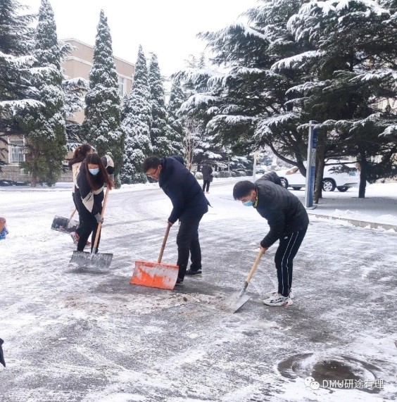 漫天北风萧瑟,遍地银装素裹。大连再次迎来了冰雪模式,大雪纷纷扬扬,短短一个上午,校园处处就已经被皑皑白雪所覆盖。瑞雪给师生们带来了别样的欢乐,朋友圈也成为了大家“赏雪”的圣地,但大雪也同样给校园安全带来了诸多隐患。1月4日中午,当大多数人都在午休并希望雪可以再大一些时,理学院研究生党支部党员们已经默默开始了扫雪除冰的工作。